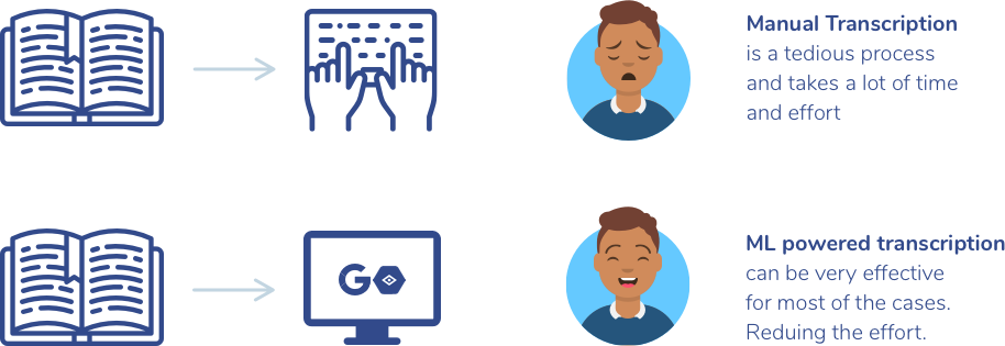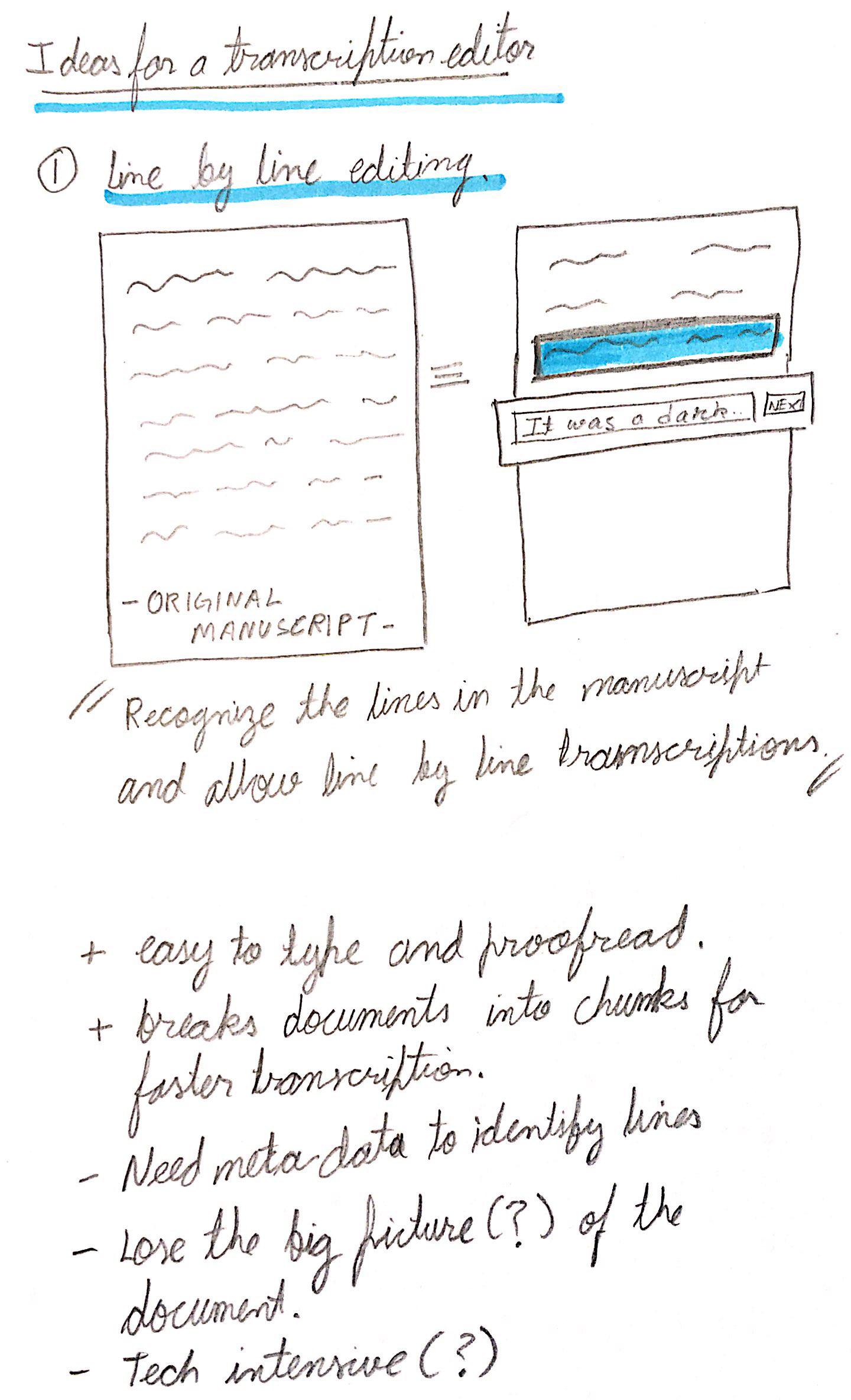 When I first started working on the project, I questioned the purpose of the transcription editor. The final aim of the transcription feature is to produce text which can be used for data analysis. There can be other ways to do this as well. GALE uses one of the best Optical Character Recognition software. However, the latest machine learning algorithms by Google and Microsoft do a much better job at converting images to text.
