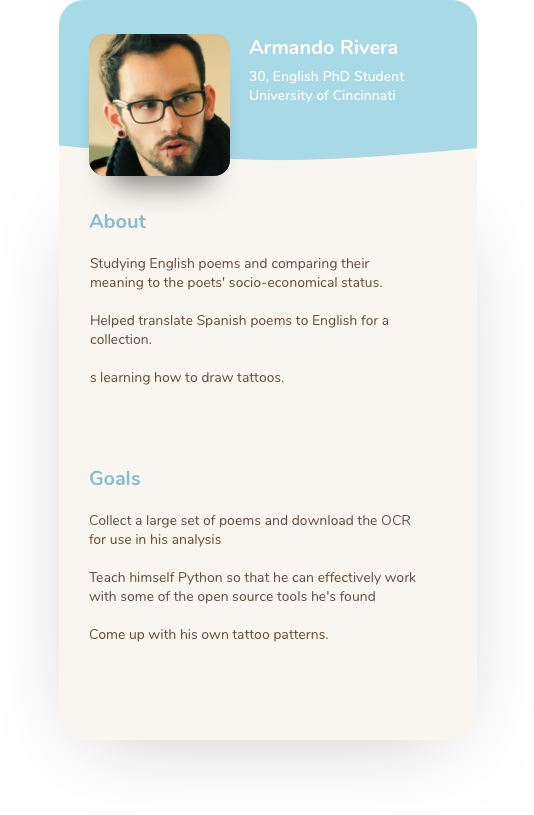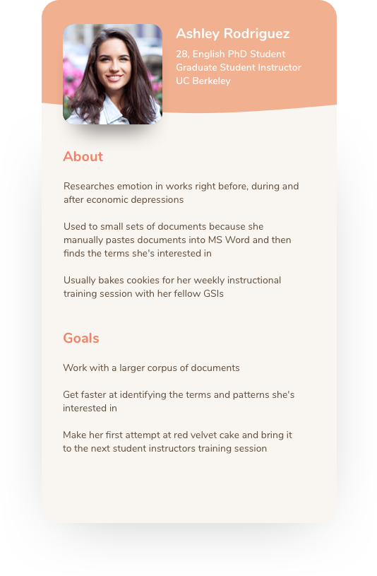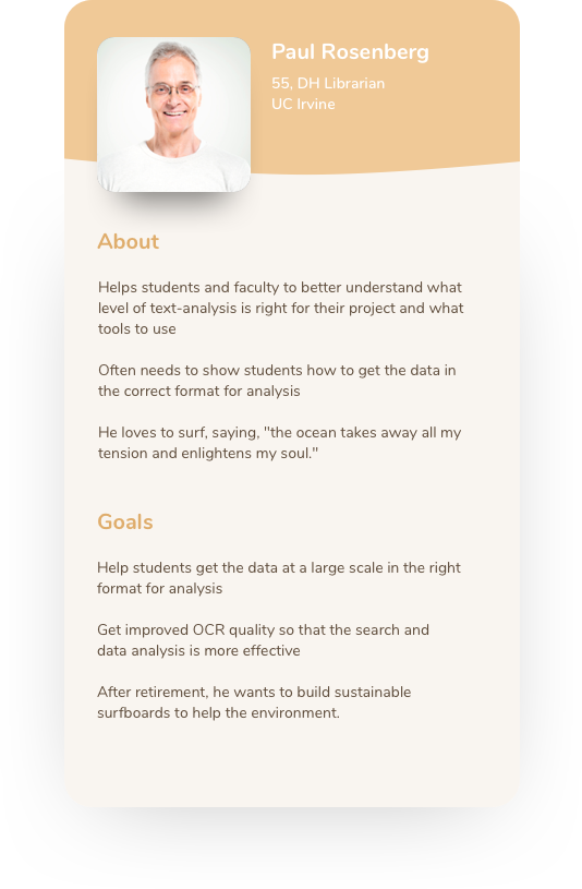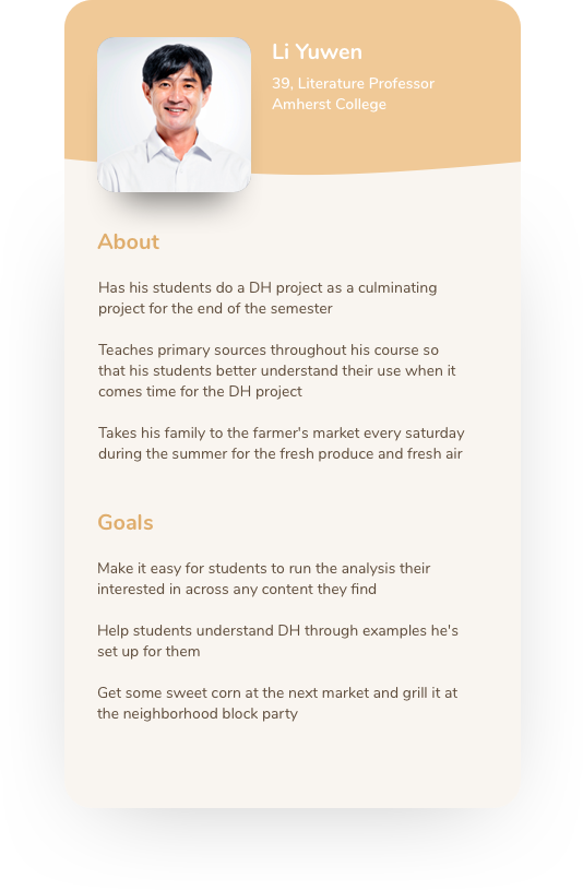 Digital humanities is a relatively new and diverse field. There are no hard practices and conventions. To understand the current practices, I interviewed some researchers to learn how they work. Since the primary persona is not an expert researcher, I interviewed some novice users as well.
