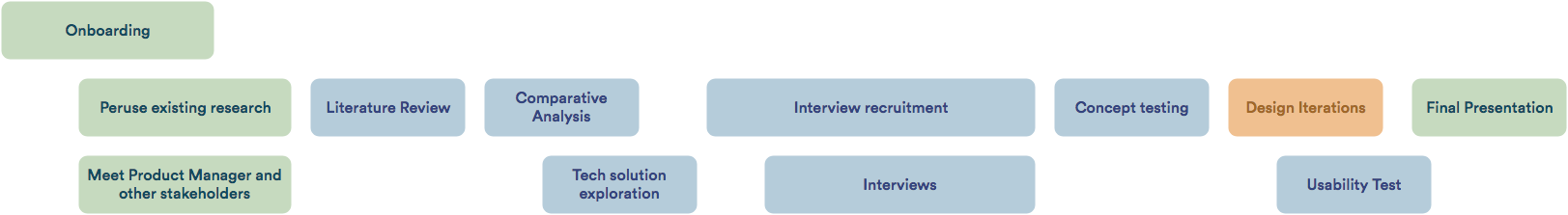 Here's an approximate timeline of the work I did for the DSLAB project. I learned that while it is important to make a plan for the Research and Design process, the plan should be flexible enough to accommodate last-minute changes as well. Some interviewees rescheduled their interview at the last minute