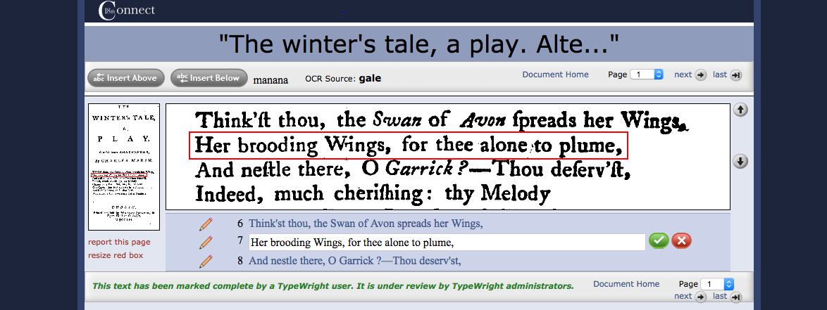 Typewright allows volunteers to transcribe 18th-century texts. Typewright automatically identifies lines and juxtaposes the image and the text entry box. This makes it easy to concentrate on the text.