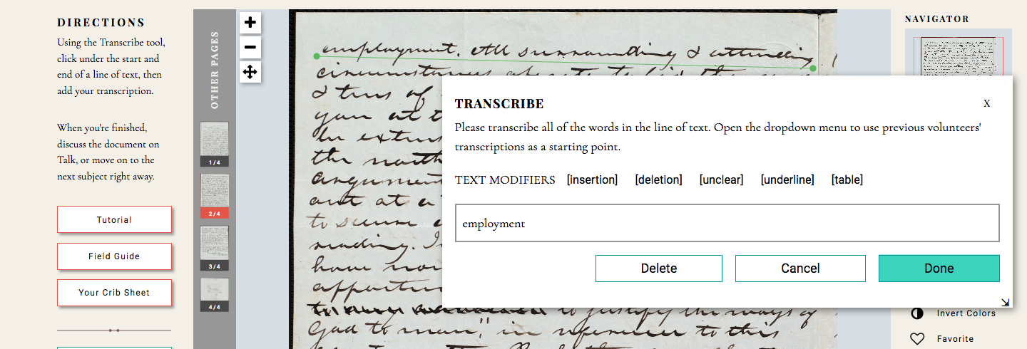 Zooniverse is a place for untrained users to learn and contribute to existing research projects. I appreciate the thorough onboarding process in these projects and interactive text entry tool which helps mark the region on the page as well.